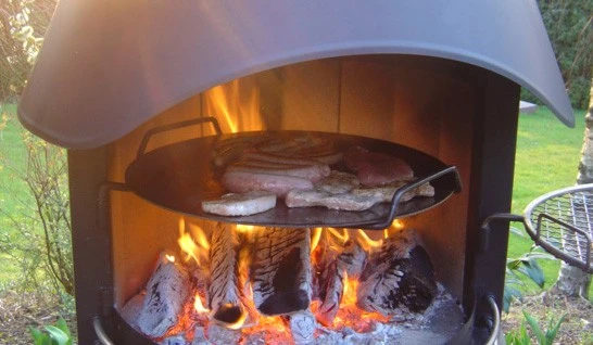 Die Girse Steakpfanne mit einem Durchmesser von ca. 50 cm ist aus solidem, geschmiedetem Stahl gefertigt. Sie wird einfach mithilfe der Schwenkhalterung statt des Grillrostes am Girse Typ 3 Grillkamin eingehängt.