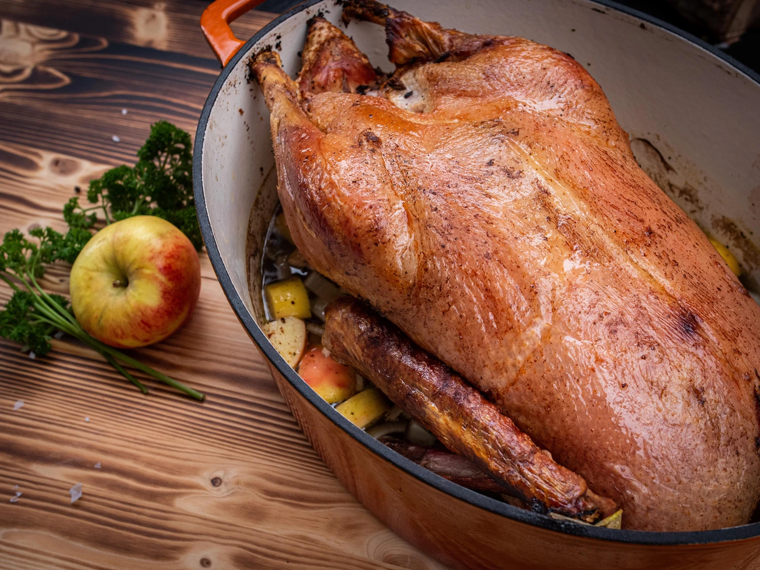Den saftigen Sonntagsbraten im Ofen schmoren, zartes Gulasch am Herd köcheln oder deftige Rouladen am Grill braten: das Sternentöpfchen kann Alles! Die ovale Form des Gusseisen Bräters bietet eine große Fläche zum Anbraten, während er danach platzsparend auf der Grillfläche oder im Ofen platziert werden kann. Der große XL Gussbräter bietet sogar genügend Platz für die Weihnachtsgans.