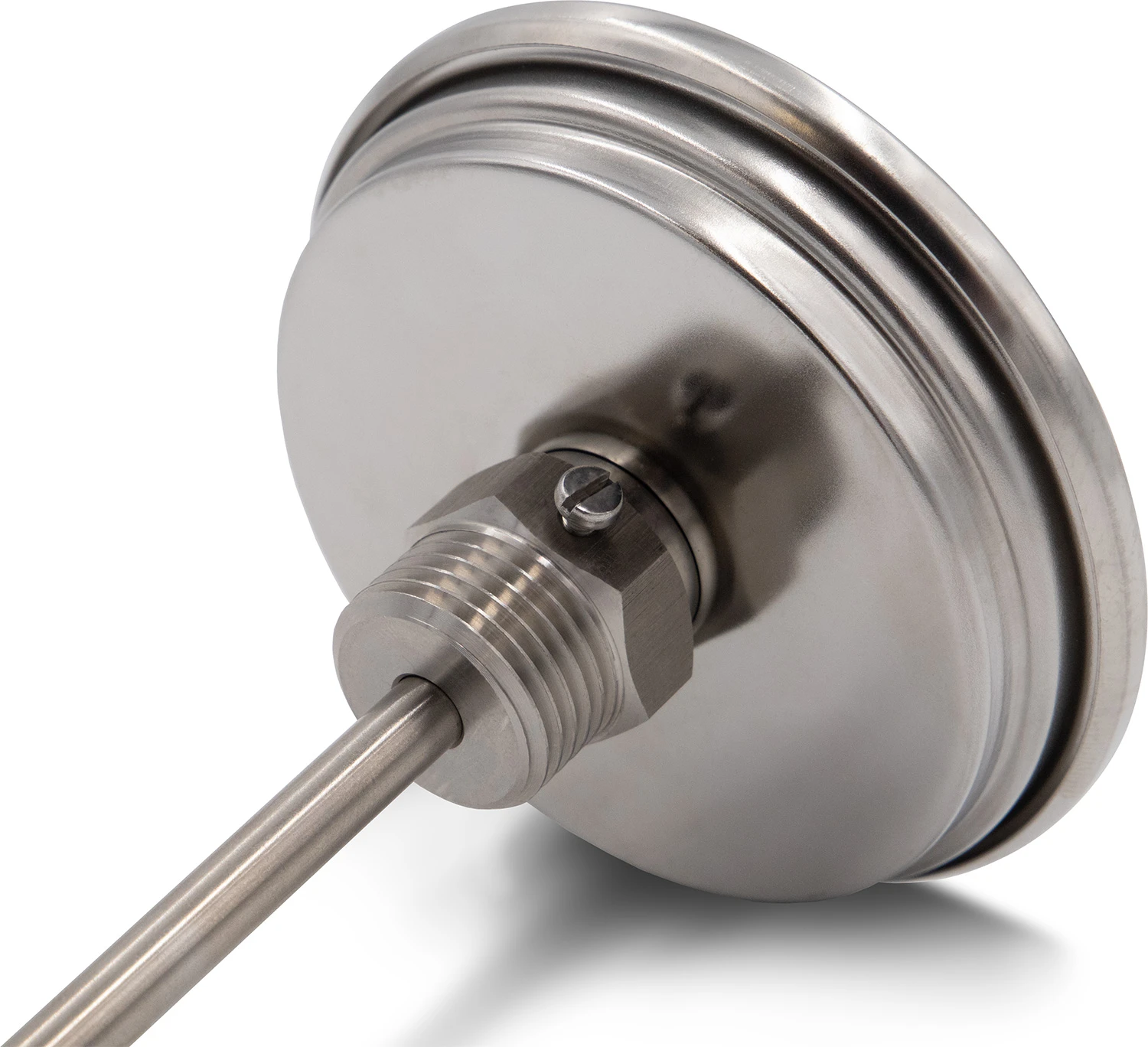 Auf der Rückseite des Thermometers befindet sich ein Gewinde, welches sich in die Thermometeröffnung im Deckel bzw. der Tür des Smokers schrauben lässt.