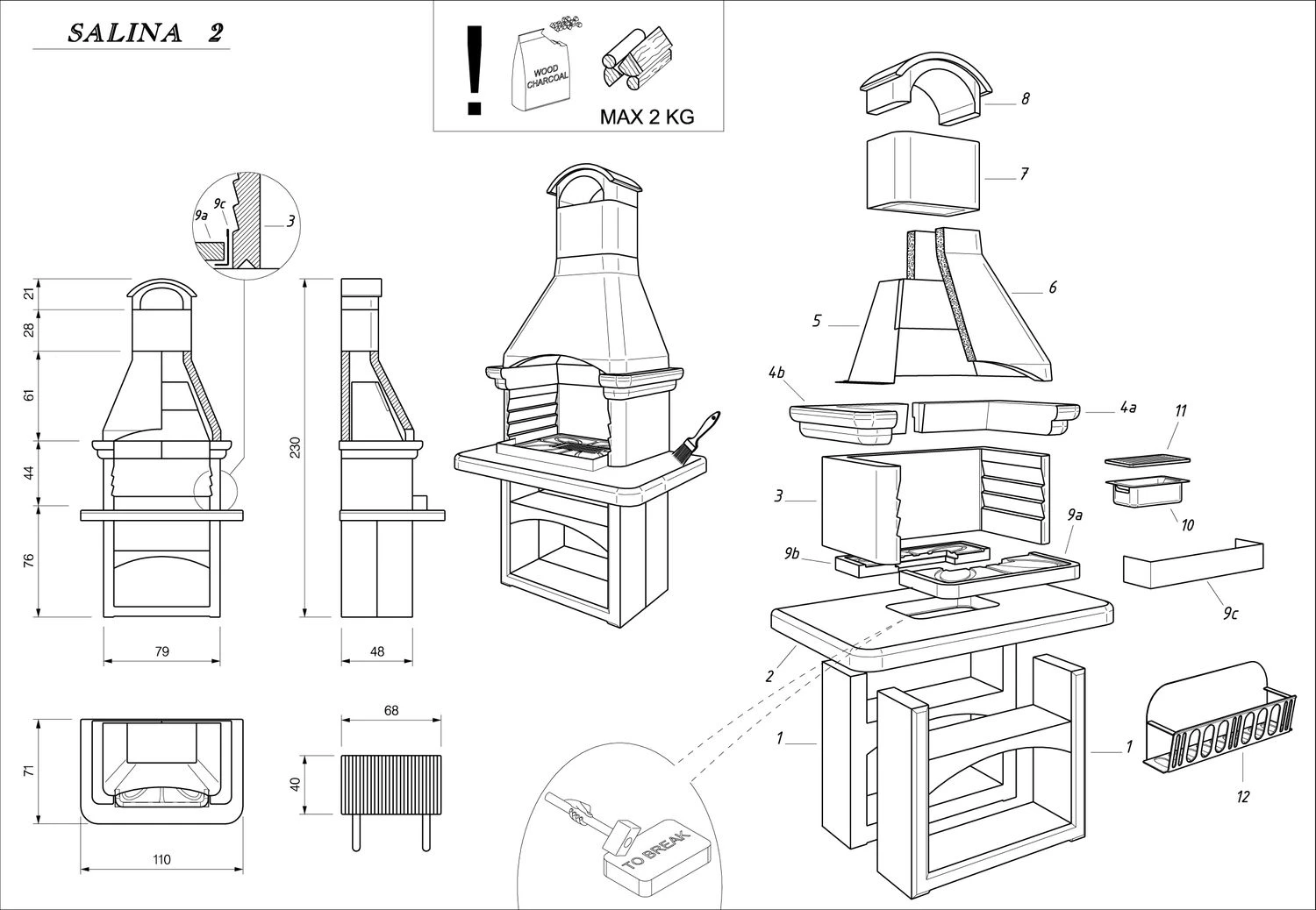 - 1 x Palazzetti Grillkamin Salina 2 bestehend aus einzelnen Betonteilen zur Selbstmontage