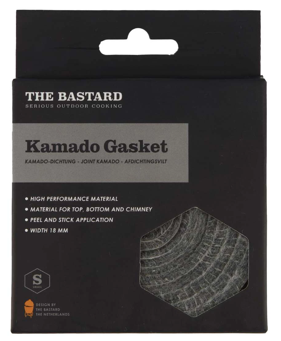 Das selbstklebende Dichtungsband aus Nomex/Kevlar Filz lässt sich ganz einfach an Ihrem Keramikgrill befestigen und ist ausreichend, um die Unterseite des Deckels, die Oberseite des Korpus und den Abzug der der Bastard Small Modelle neu zu bestücken.